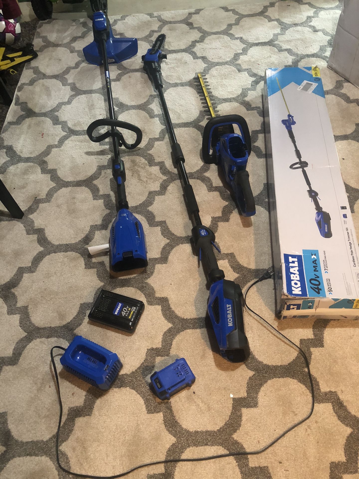 Kobalt battery trimmer with battery and charger get the trimmer here: